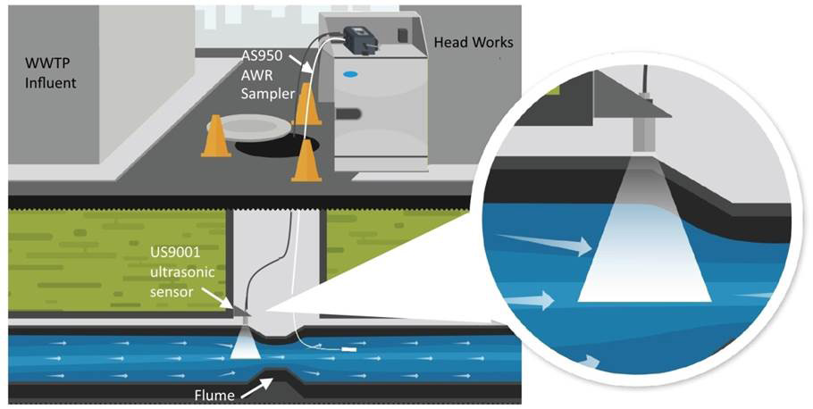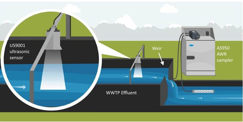 When the Hach® AS950 Automatic Sampler launched in 2015, we were excited to offer the option to connect digital flow sensors to the controller. Digital flow sensors can be used for collecting flow proportional samples, as well as triggering the start or end of sampling programs with setpoint conditions. The flow sensors that the AS950 is compatible with are the US9001 down looking ultrasonic sensor1, and the submerged pressure area velocity (sub-AV) sensor.