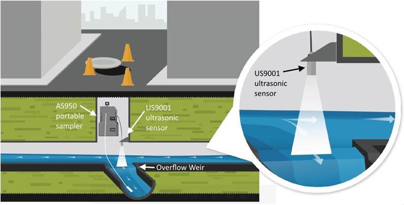 Overflow weirs are another suitable application for the US9001: