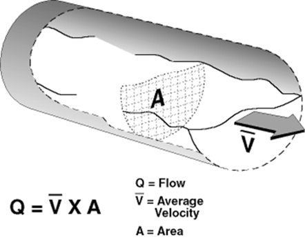 - Flow Rate = wetted area x average velocity
